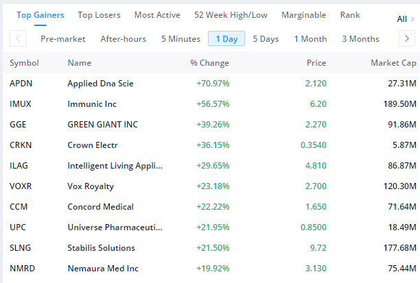 어제오늘 날이 참 쌀쌀해졌습니다. 날이 쌀쌀해지는 만큼 시장상황도 쌀쌀합니다. 어제의 탑게이너입니다. CRKN밑으로 보면 한국장 느낌이 납니다. 그나마도 한국장 기준으로 상한가 간 종목이 한 종목 밖에 안되네요. 이런 시장상황에서는 물려있는 종목을 제외하고서는 현금 쥐고 겨울잠 자면서 봄이 오길 기다려야 하는지도 모르겠습니다. 이런 상황에서 어제자 탑게이너에서 70%의 상승률을 보인 종목은 어플라이드 DNA 사이언스(APDN)입니다. 이름을 보니 이 종목도 바이오네요. 바이오가 역시 쏘아올리긴 최고인가봅니다.