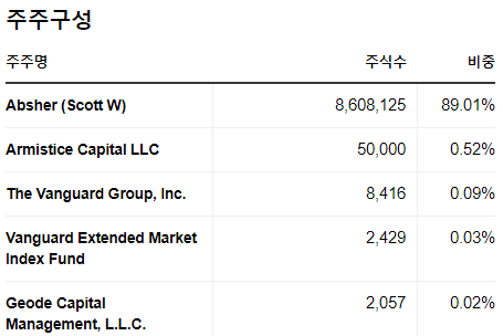 이는 PIXY가 품절주라서 주가가 올리기 쉽다는 점에서 기인한 것 같습니다. PIXY는 대부분의 주식을 Absher에서 보유하고 있습니다. 나머지 10%의 주식을 사고 파는 과정에서 주가가 크게 변동할 수 있다는 점에서 매매는 신중하게 해야 될 것 같습니다.