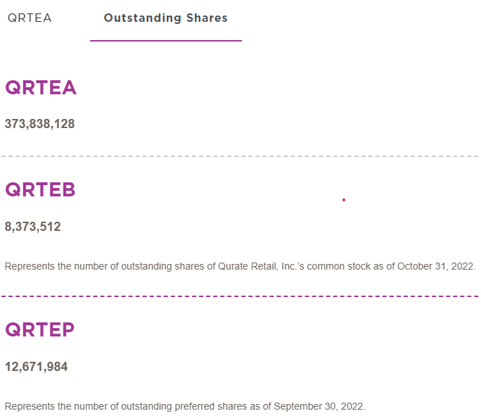 회사를 살펴보기 전에 큐레이트 리테일의 주식은 시리즈A인 QRTEA와 시리즈B인 QRTEB, 그리고 QRTEP가 있습니다.
