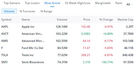 자고 일어났더니 벌써 겨울인지 파란나라입니다. 어제 누가 쳐박았길래 이지경이 됐나 싶어서 most active를 살펴봤더니 애플(AAPL)이 많이 떨어졌네요.